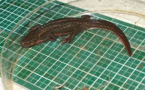 先日の個体とは別の茶色がさらにはっきりしたアカハライモリ個体。